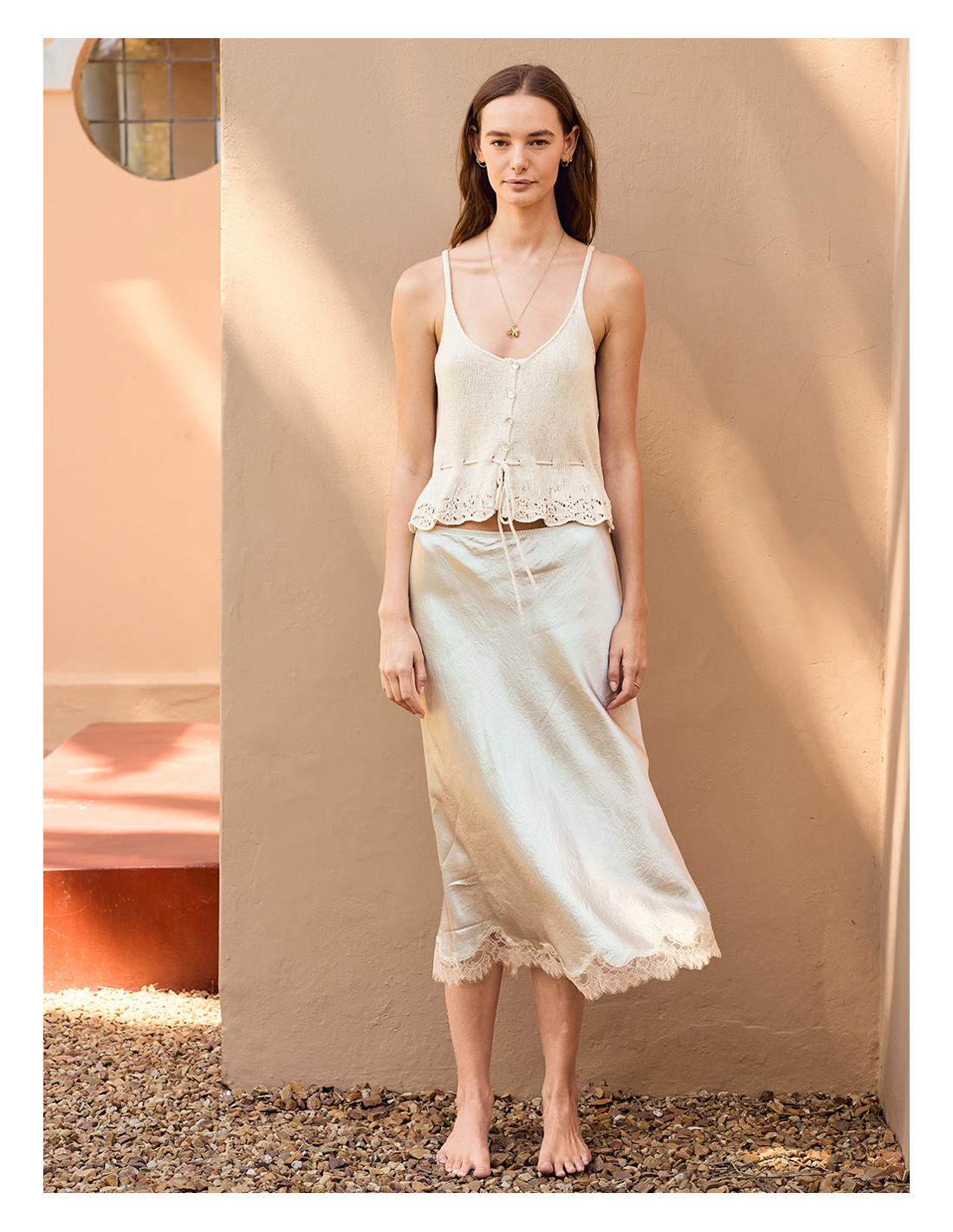 Stickbeskrivning till en snygg topp med knappar i garnet Tynn Line